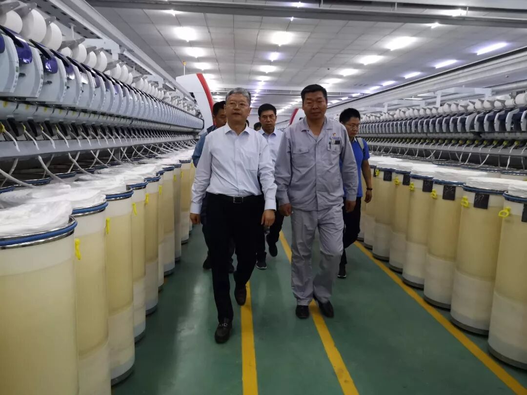 9月1日,夏令敏一行对华绒针织、汇同泰、富丽震纶、金昇、康平纳等企业进行参观调研。在库尔勒纺织工业园区,夏令敏察看了入驻企业车间生产情况,机械类型,厂房建设及安置情况。